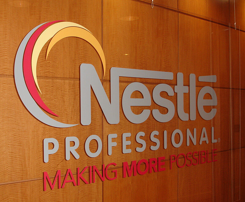 Letra caixa em acrílico interno + quadros de PS adesivados + adesivo de recorte + display de mesa + móbile de teto
